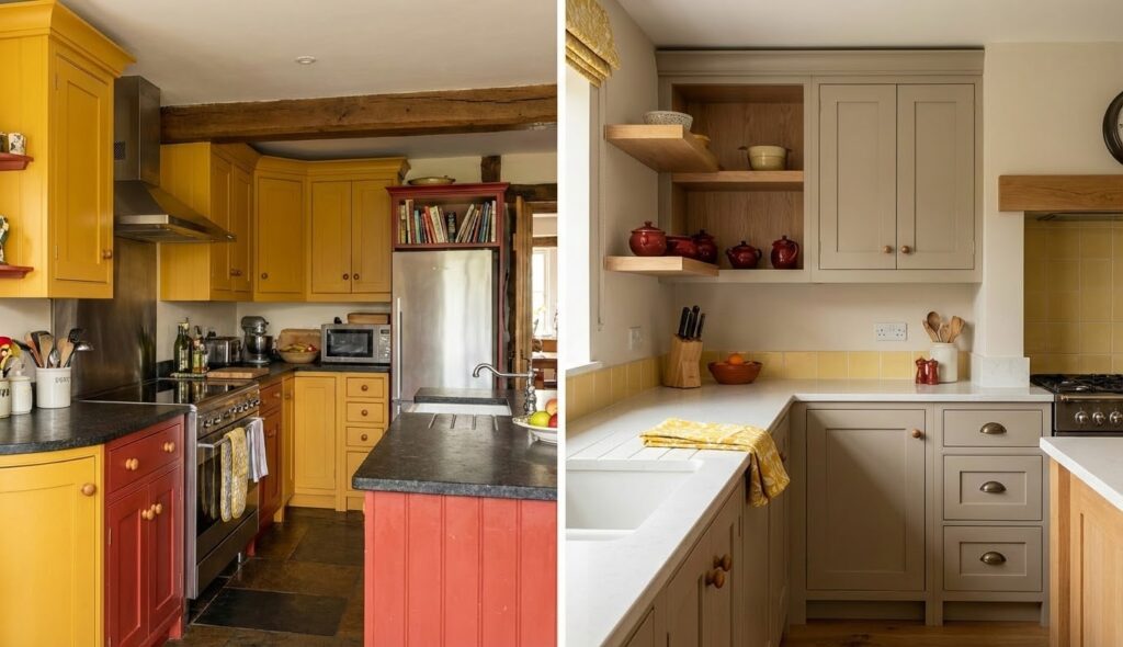 Les tonalités surchargées fragmentent la pièce. Les jaunes moutarde dominants deviennent, à vrai dire, envahissants en cuisine et figent un style thématique. Les rouges country saturent, cependant, les façades et écrasent l’inox, les pierres et les bois. Des surfaces très colorées réduisent, par conséquent, la lisibilité des plans de travail. Des accents mesurés suffisent, voilà comment, à transmettre chaleur et convivialité sans surcharge.