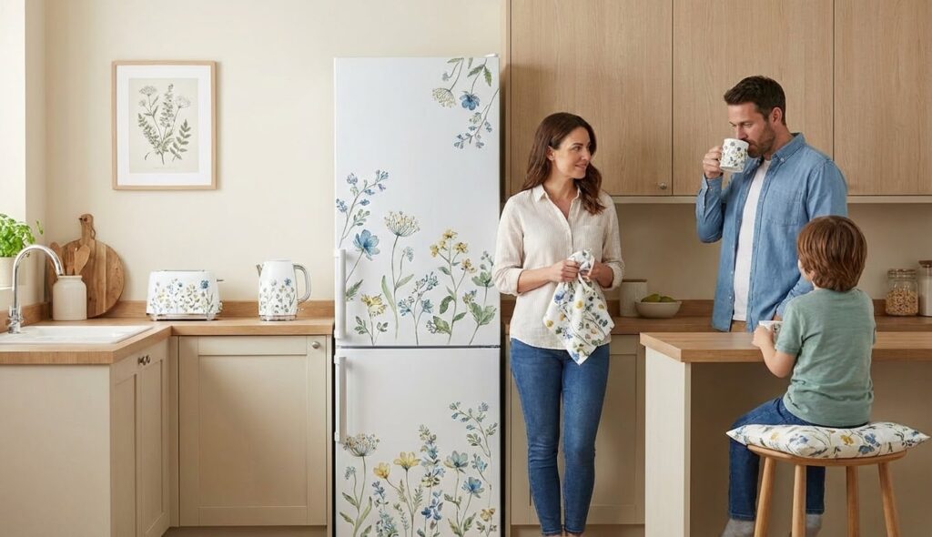 Les motifs floraux structurent une esthétique fonctionnelle, car ils transforment l’appareil en point focal apaisant. Les cuisines neutres, en revanche, gagnent du relief sans surcharge grâce à un seul motif. Les petits appareils, ainsi, permettent d’essayer l’effet avant d’oser un élément plus imposant. Les associations de teintes, de plus, se coordonnent aisément avec textiles, accessoires et vaisselle quotidienne.