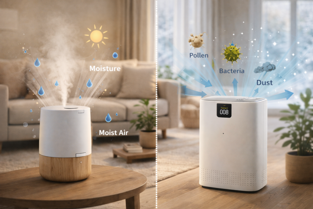 Les deux missions distinctes de l’humidificateur et du purificateur d’air