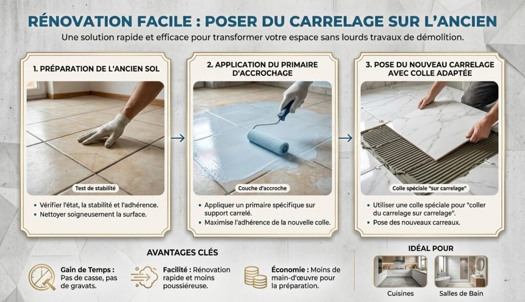 Poser un nouveau carrelage directement sur l’ancien pour gagner en temps